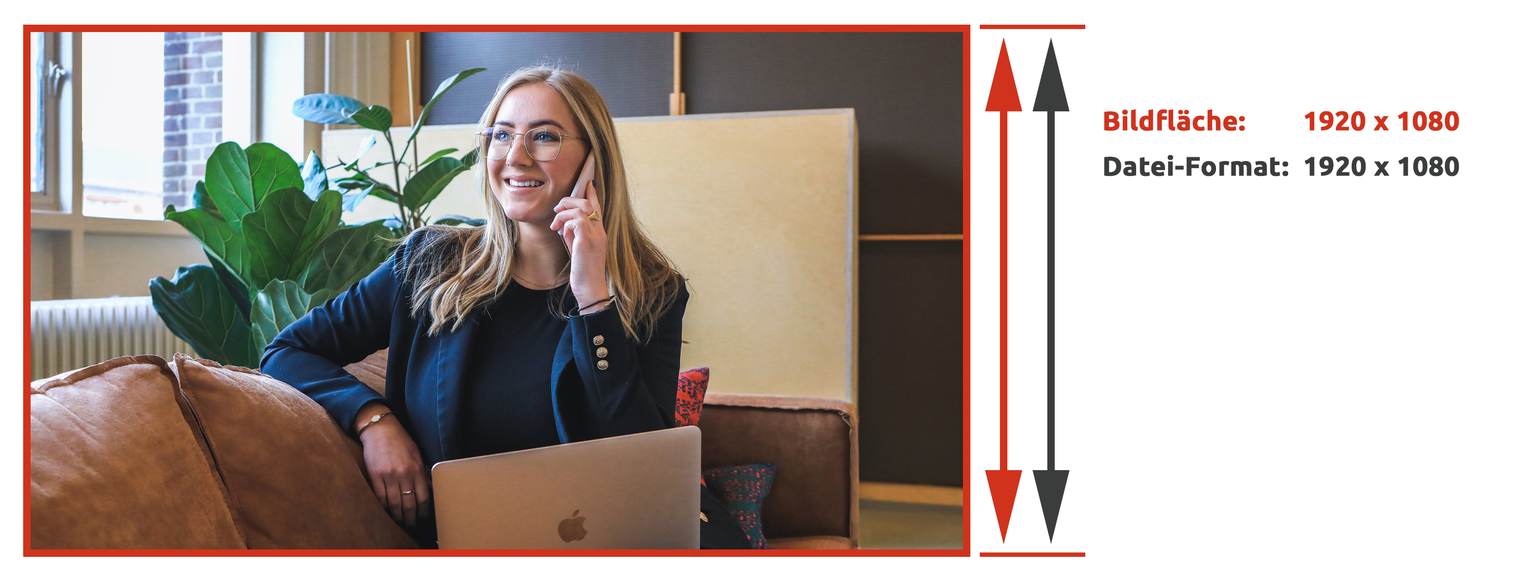 Legen Sie bitte Ihre Datei im Format 1920 x 1080 Pixel an und platzieren Sie Ihre Bildfläche immer im oberen linken Bereich.